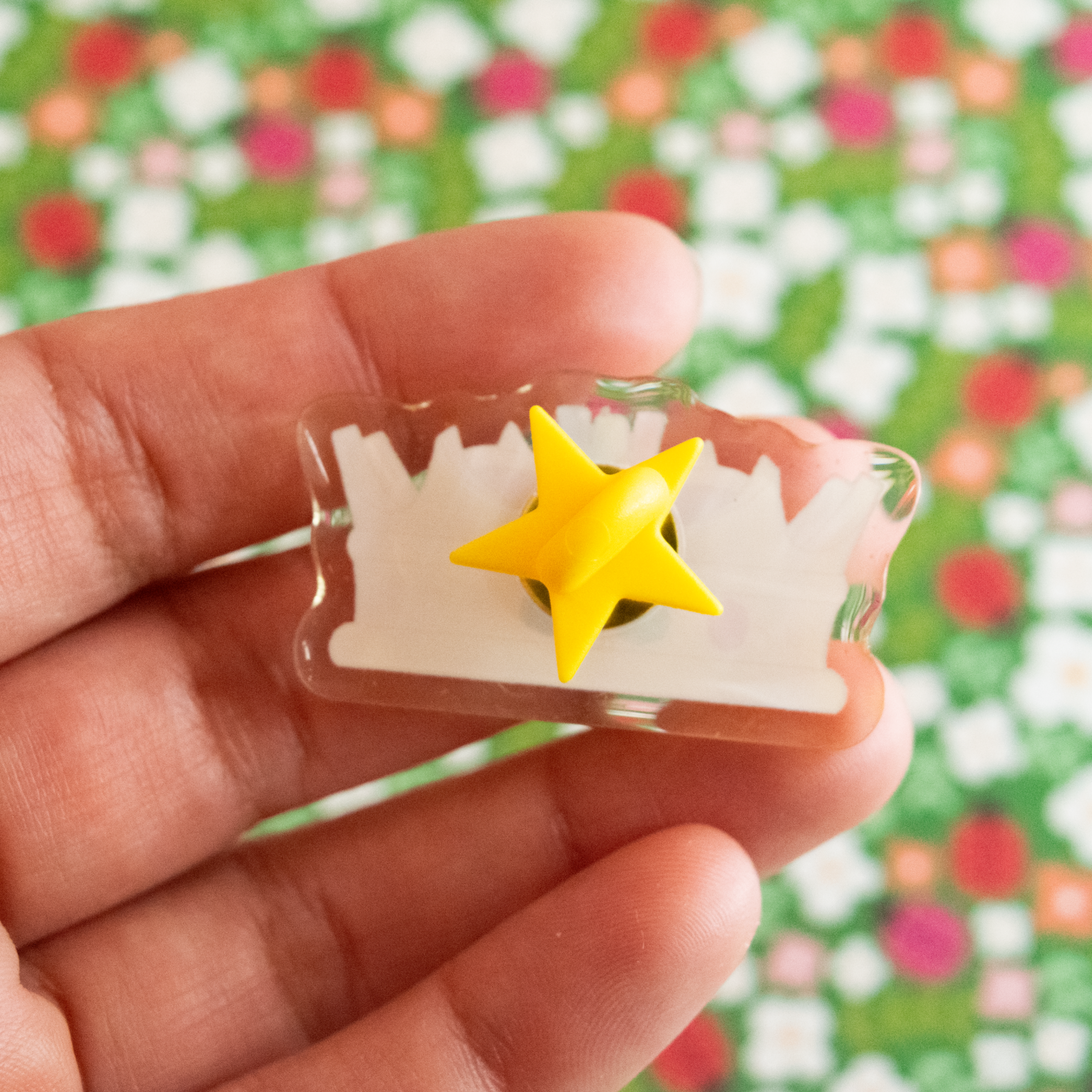 • Approx. 1.5" x 1"• Glittery acrylic pin• Sturdy & professionally made